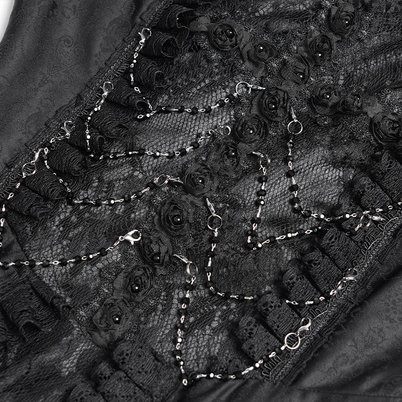 - Style:Gothic Pattern Satin Rose Mesh Long Sleeve Dress