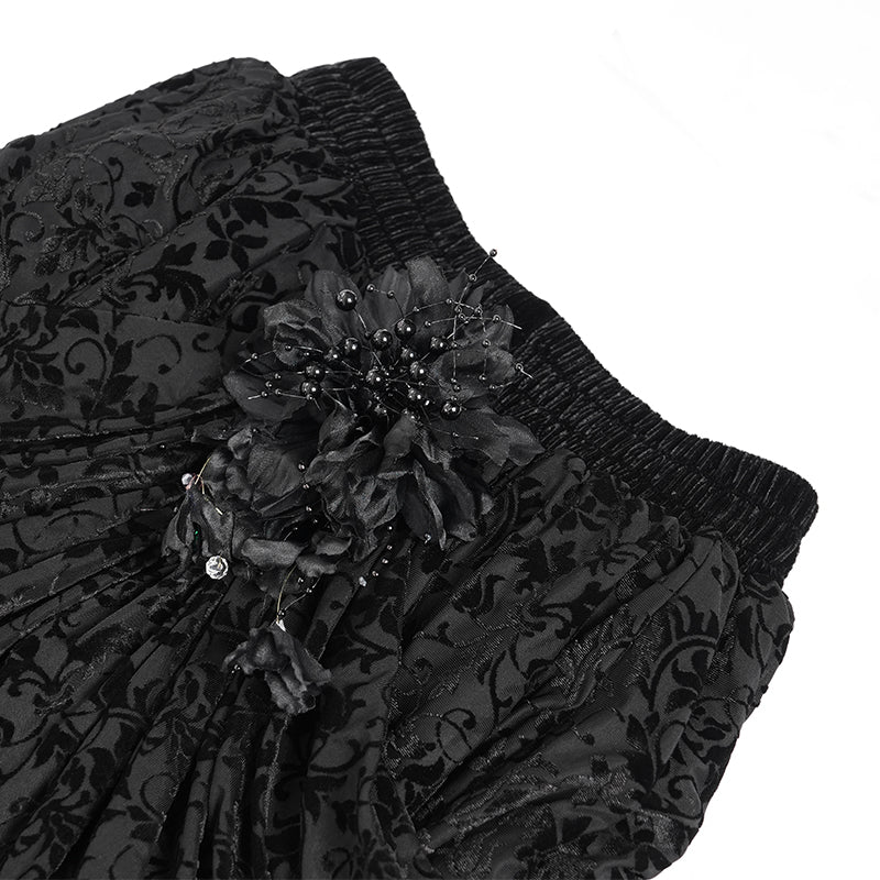 • The waist is made of velvet with elastic and a drawstring design.