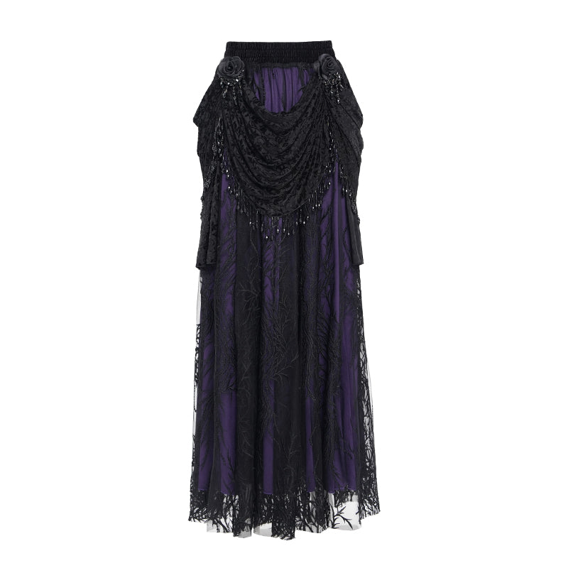 • Load image into Gallery viewer, ESKT06702 purple branch mesh gothic skirt