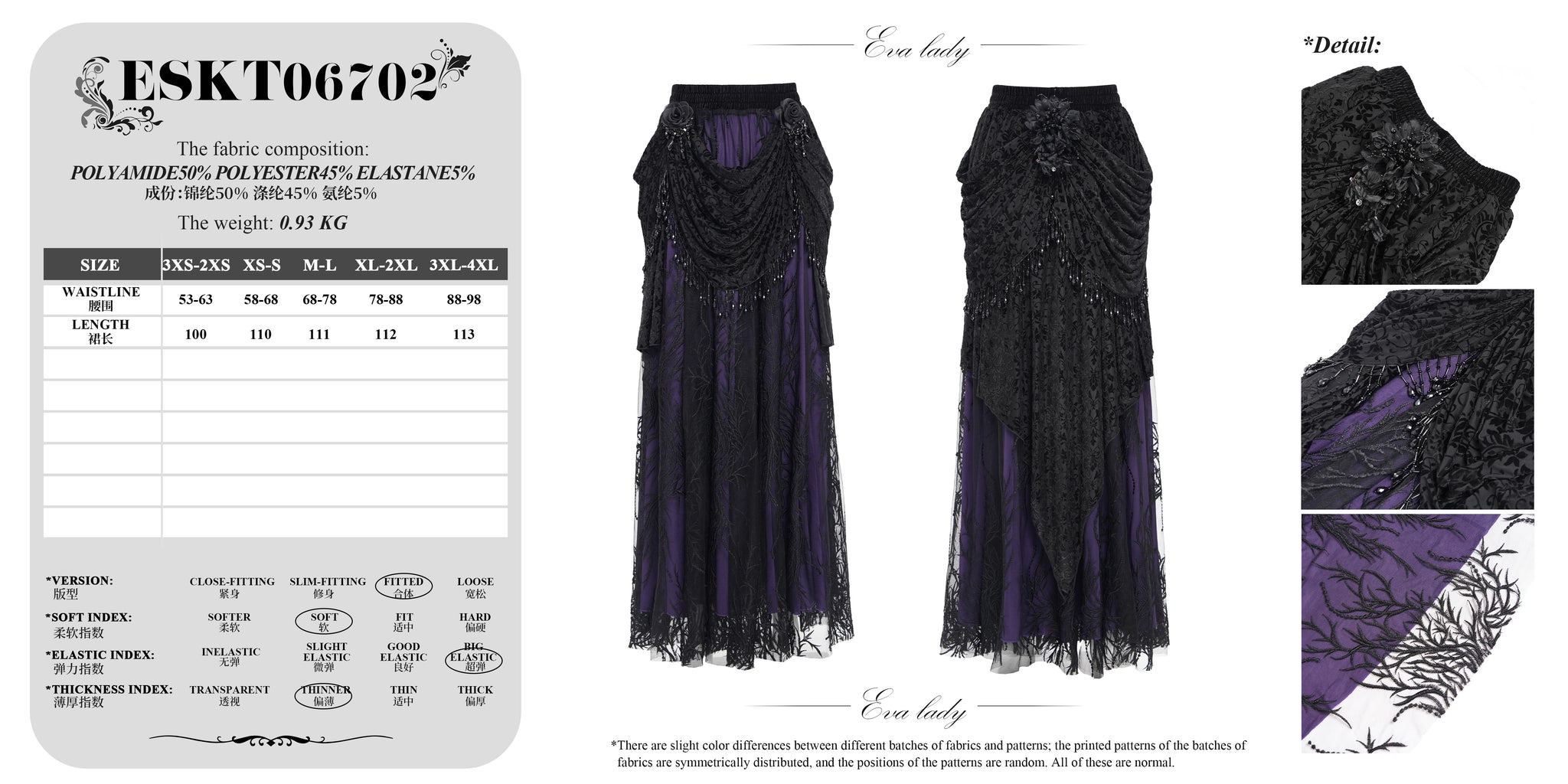 • Size:3XS-2XS,XS-S,M-L,XL-2XL,3XL-4XL