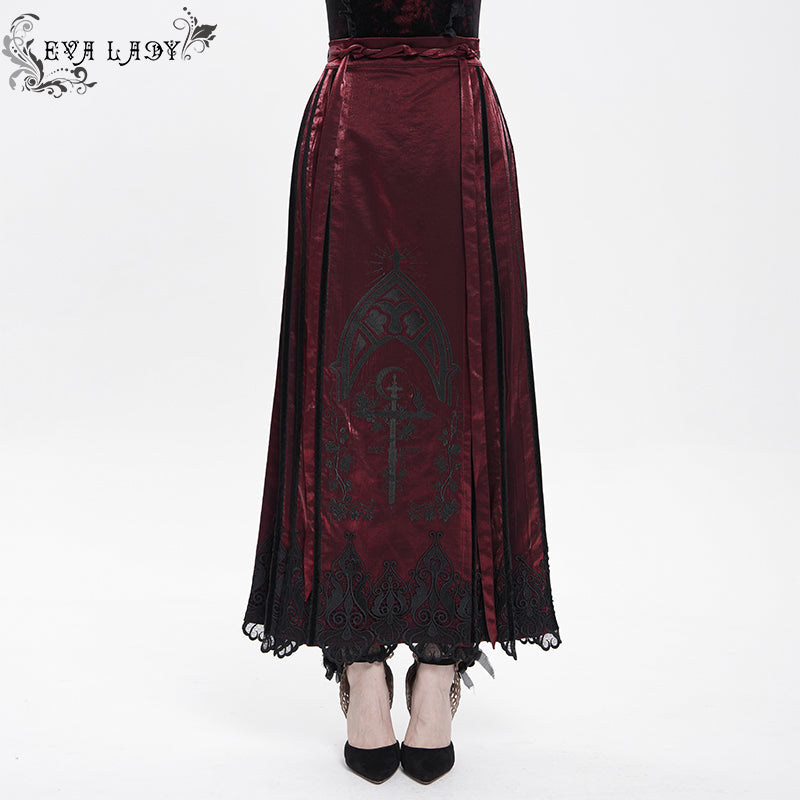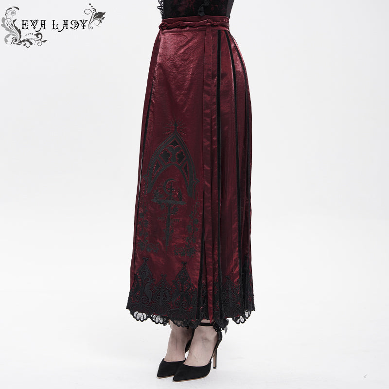 - Style:Burgundy Gothic Cross Embroidered Horse Face Skirt