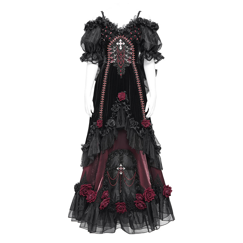 - The red diamond decoration in the front is wrapped into a tombstone shape, connected to the hem and echoing the underlying red material.
