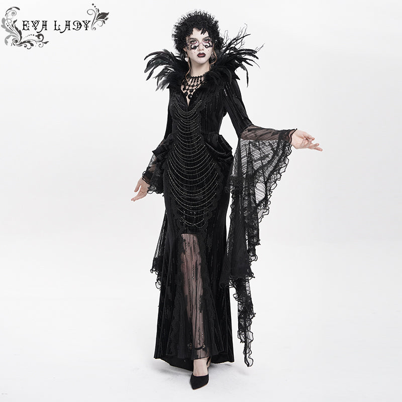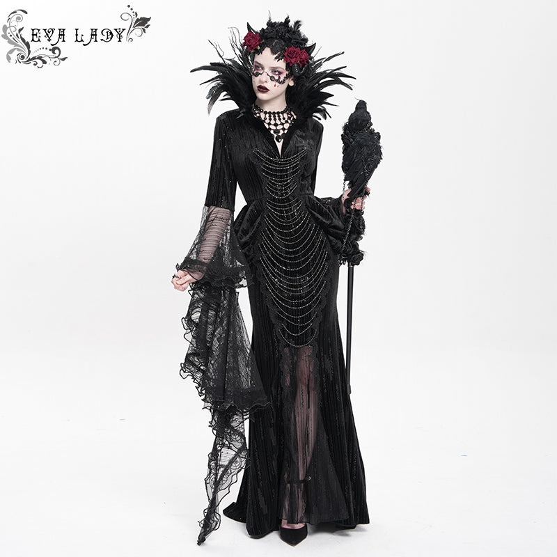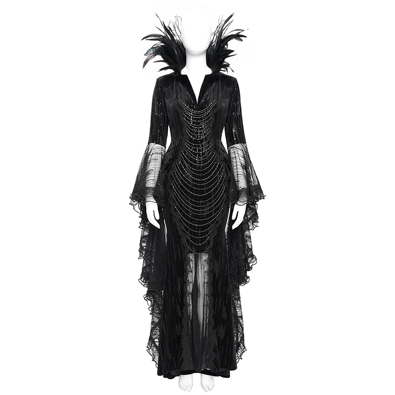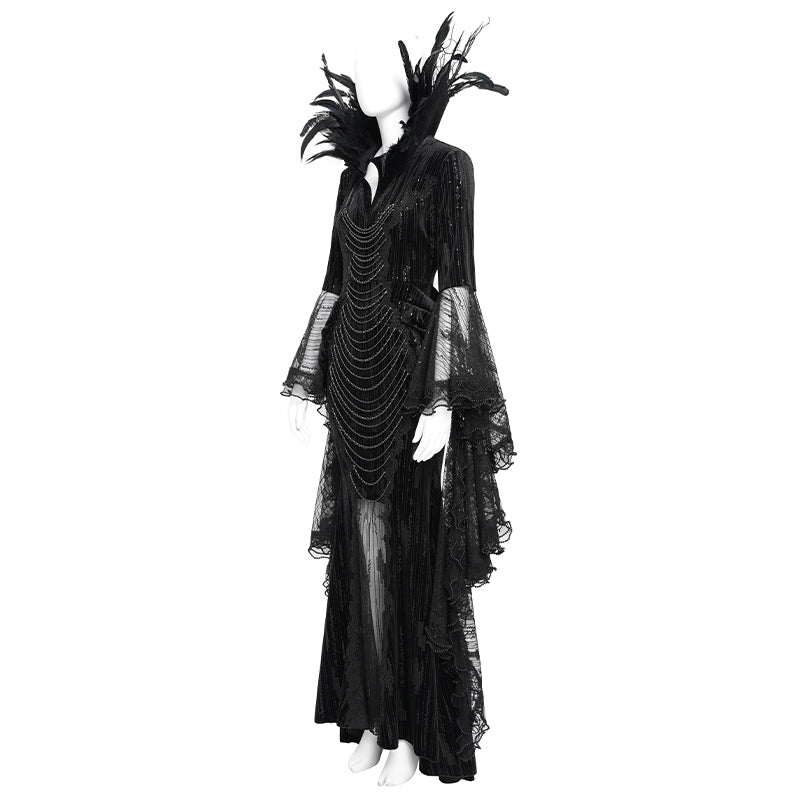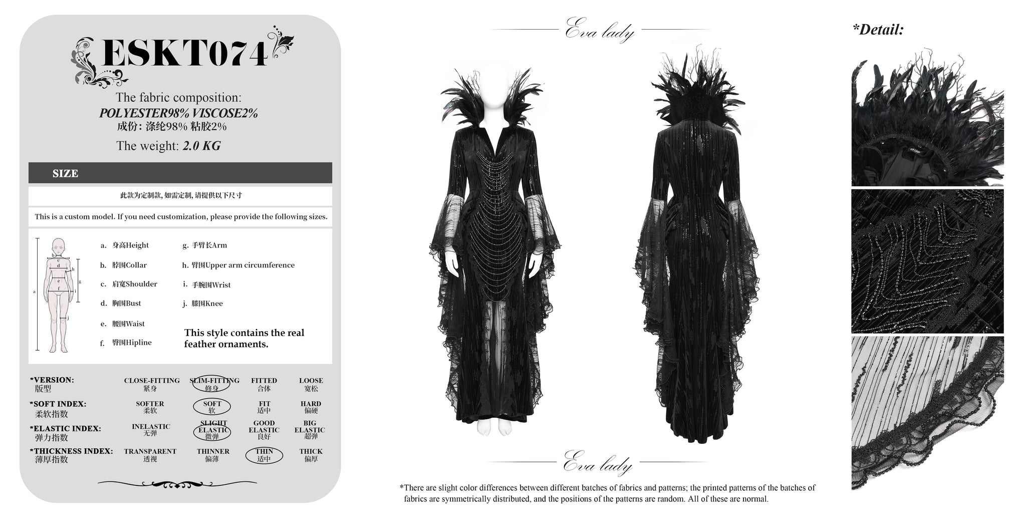 - Style:Gothic wedding Custom-made feather branch collar embroidered dress