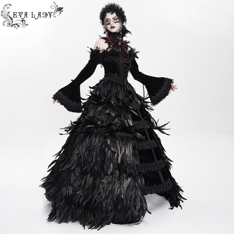 - Style:Custom-made black feather big dress