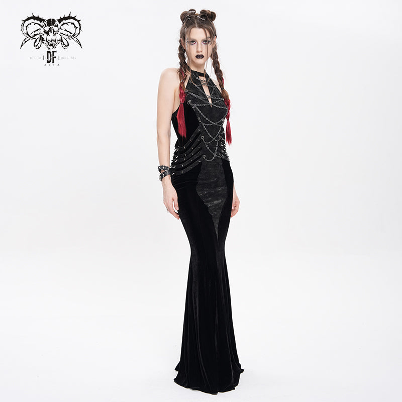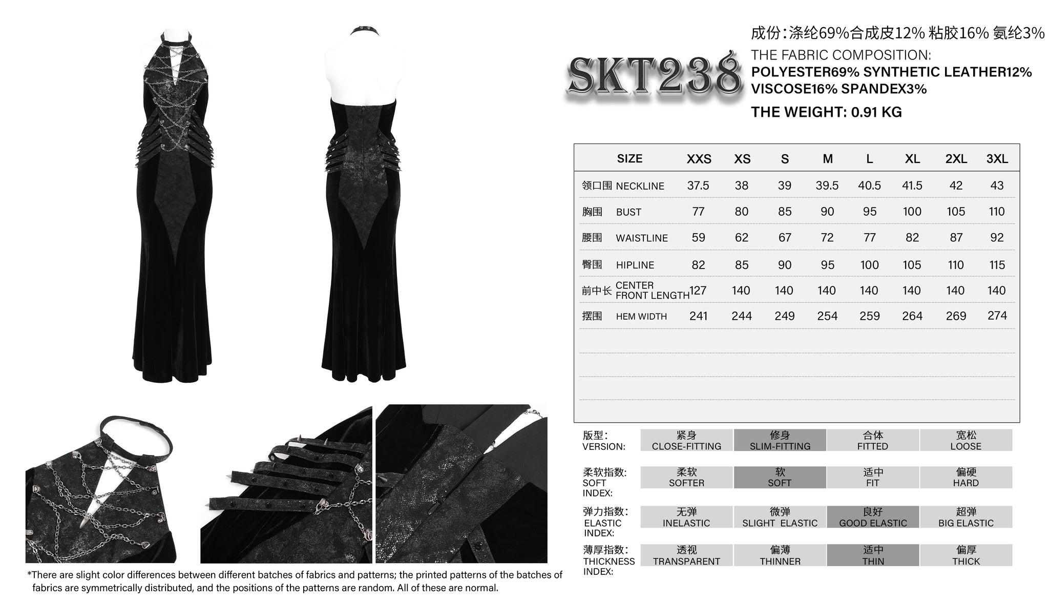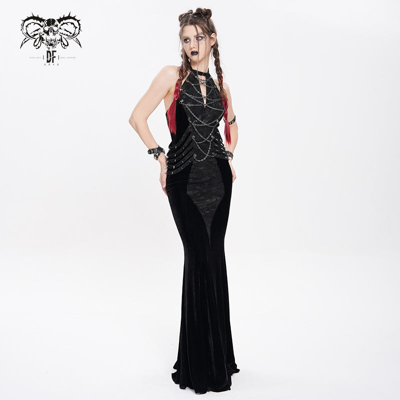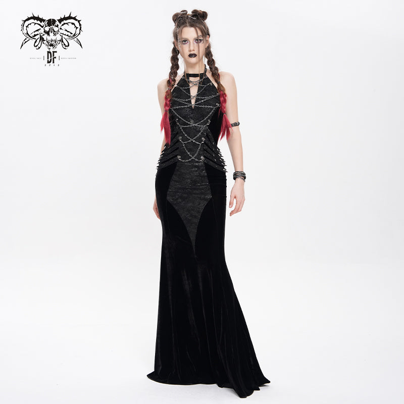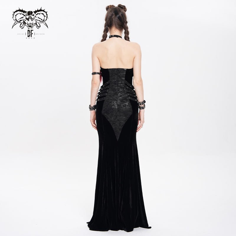 SKT238 Punk Velvet Snake Print Fishtail Long Dress