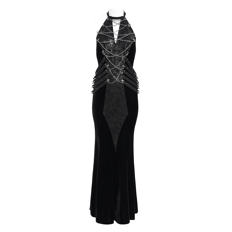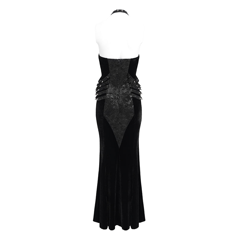 • Style:Punk Velvet Snake Print Fishtail Long Dress