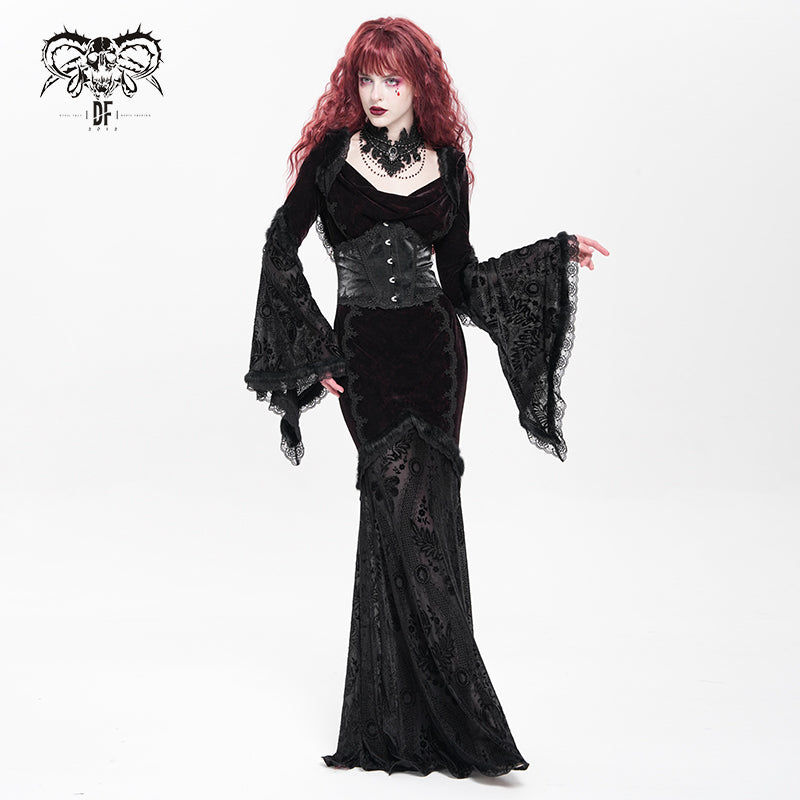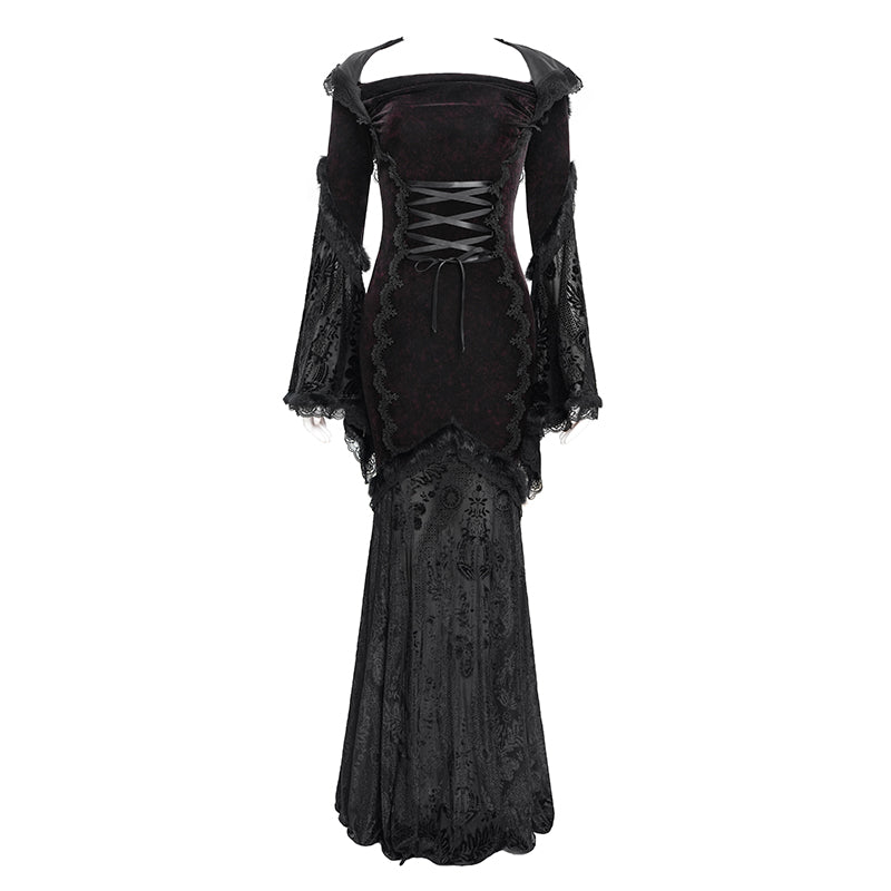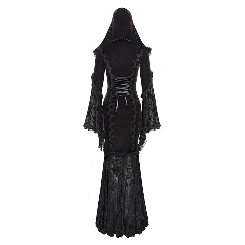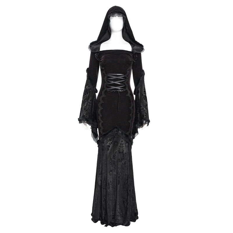 - Style:Black Long Trumpet Sleeve Gothic Fishtail Hooded Dress