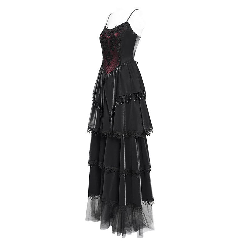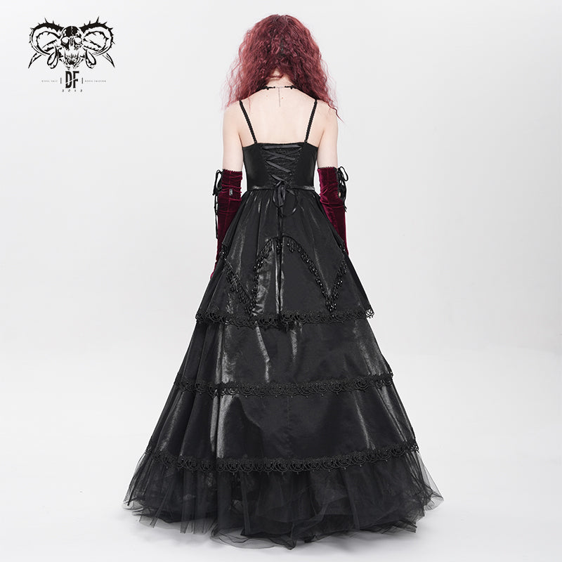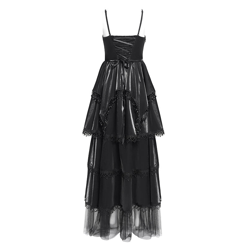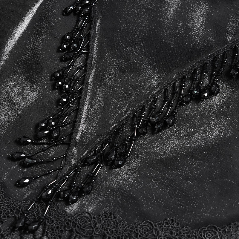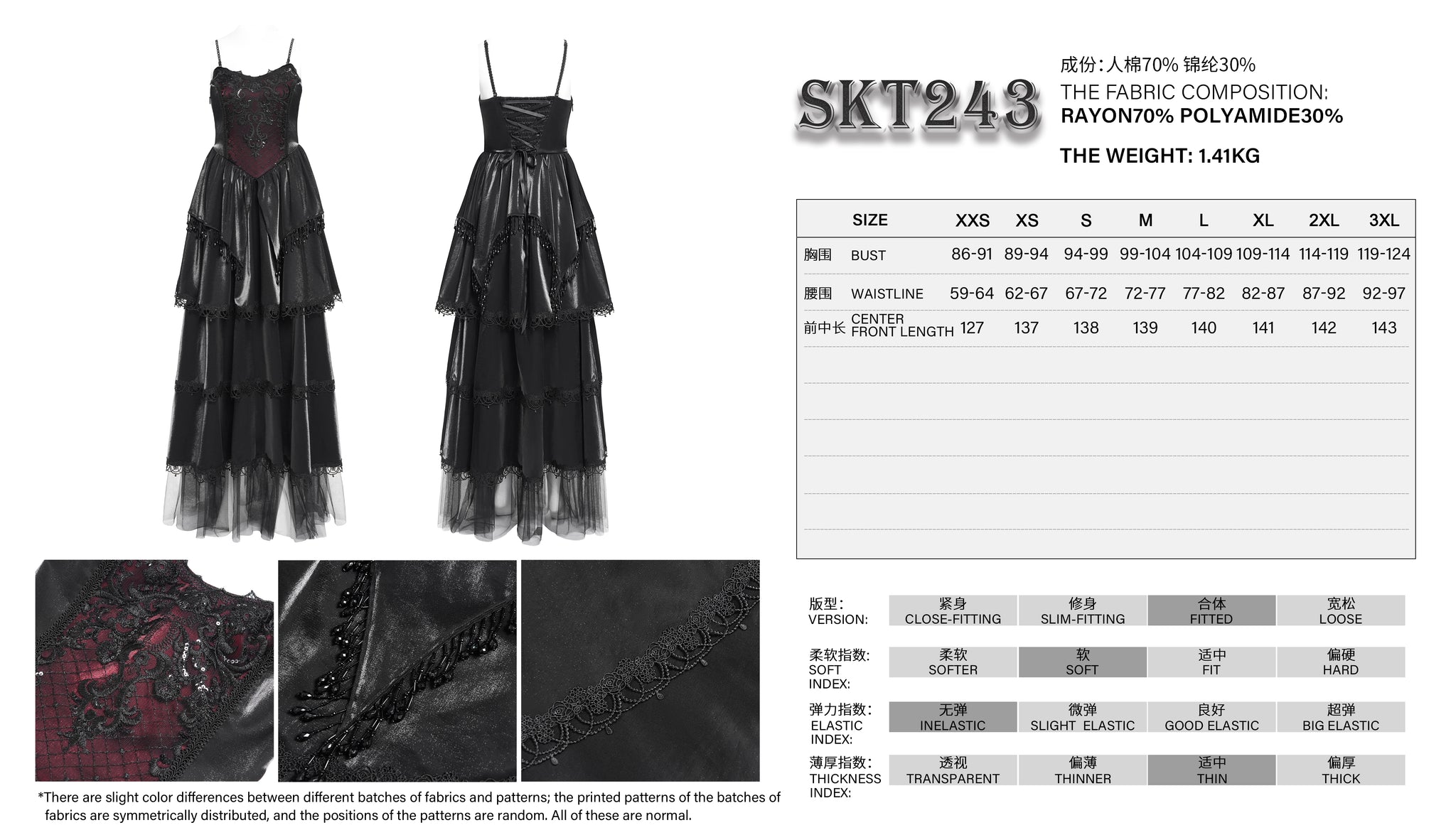 - The center front is covered with sequined lace, the waist is elastic at the back, the lower body is made of glitter, and the hem is lined with mesh pleats for a more layered look.