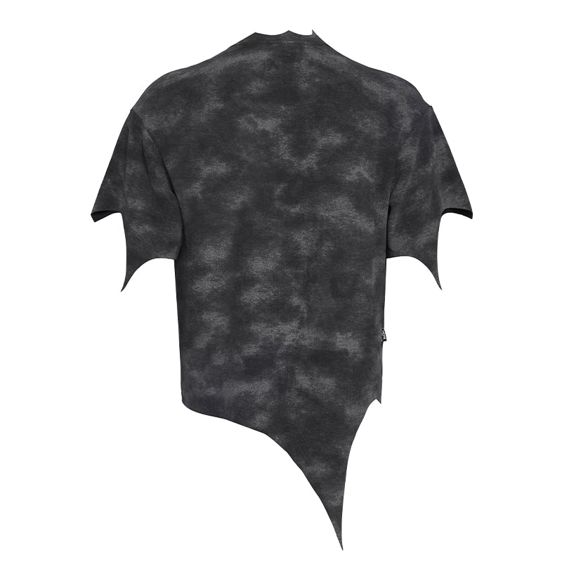 - The "Hiett" pattern is printed on the batik-like stretch knit fabric, and the collar, cuffs and hem use curved corners similar to bat wings.