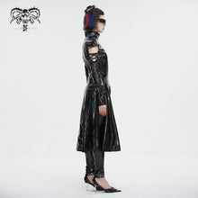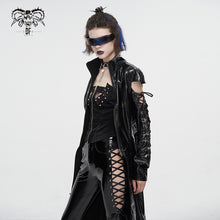 - Style:Patent leather strappy zipper long coat
